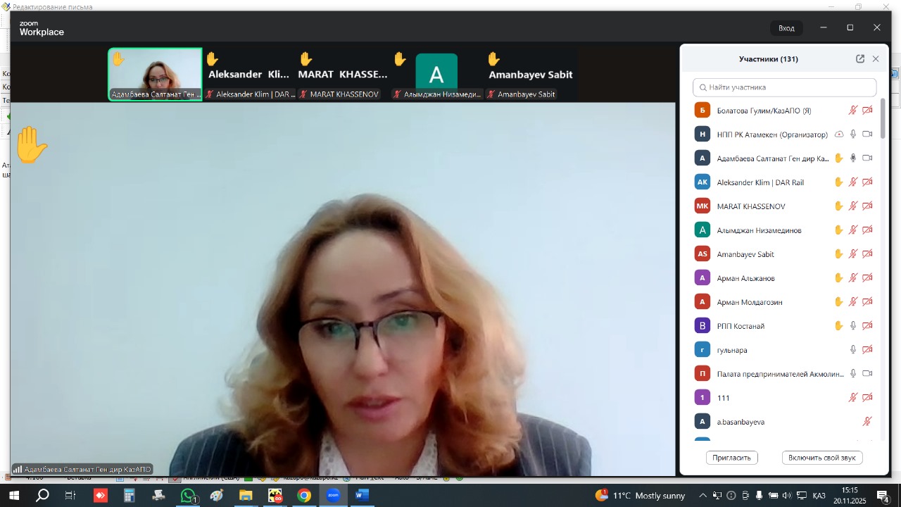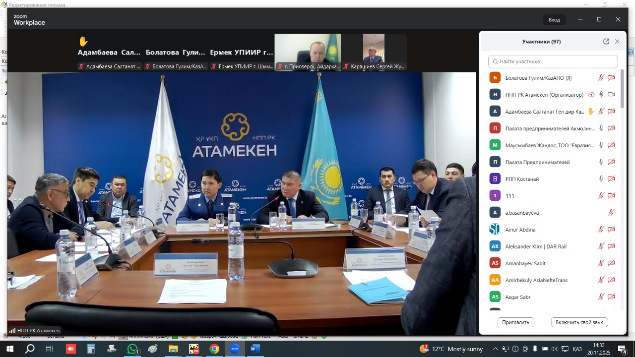 20 ноября 2025 года в Национальной палате предпринимателей «Атамекен» состоялось совещание с участием Главной транспортной прокуратуры. В заседании приняли участие представители Министерства транспорта РК, АСПИР и бизнеса.